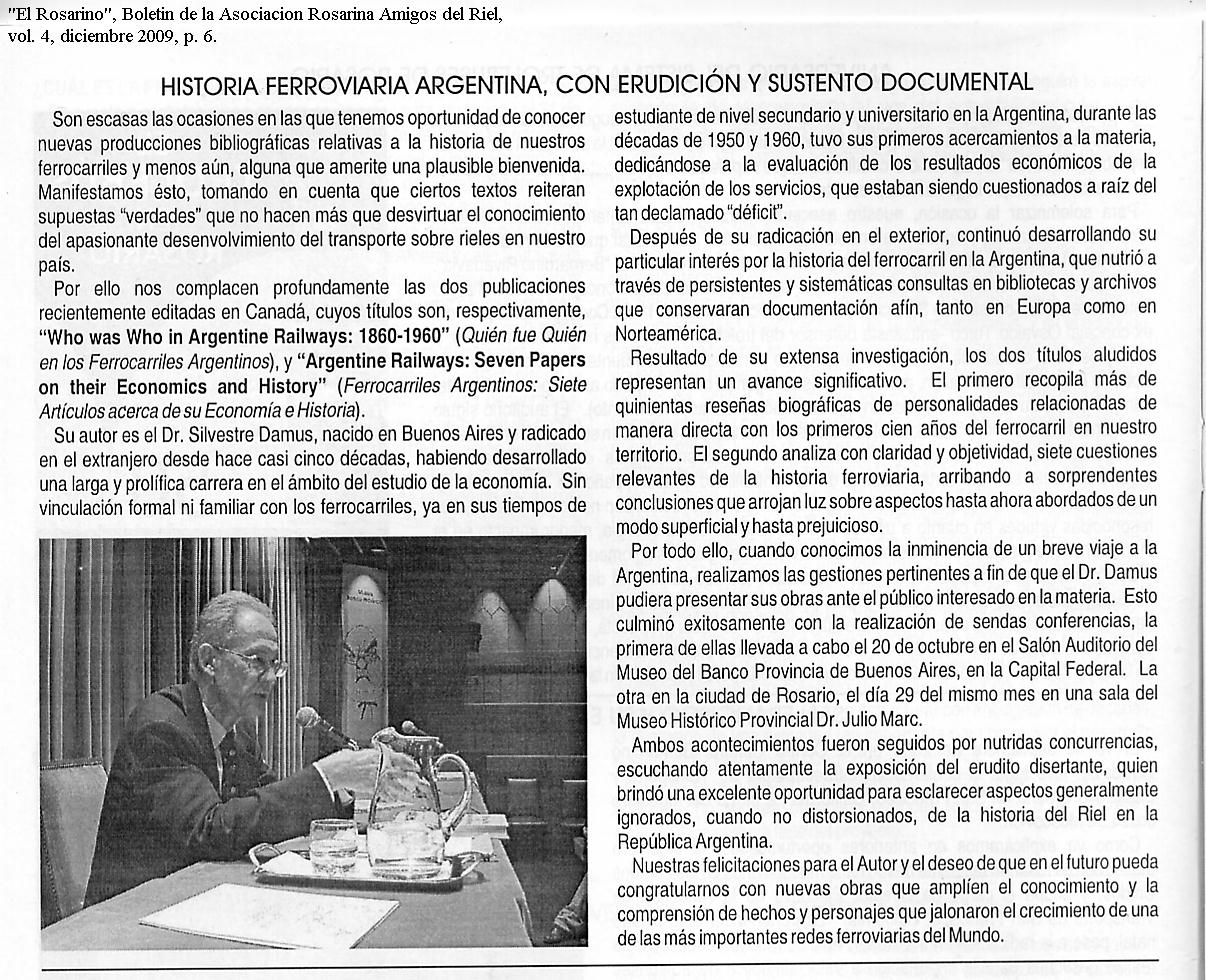 Overall, Damus refutes a number of hypotheses and offers some alternative explanations related to the performance of Argentine railways. The use of quantitative evidence is refreshing and the arguments are generally convincing. It should serve as the basis for quantitative economic histories of Argentine railways in the twentieth century.